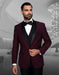 Mens Vested Wool Shawl Lapel Tuxedo in Burgundy