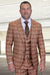 Men's Designer Two Button Modern Fit Vested Wool Suit in Rust Glen Plaid