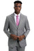 Men's Two Button Vested Stacy Adams Designer Sharkskin Suit in Light Grey
