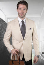 Mens Basic Two Button Slim Fit Suit with Optional Vest in Light Tan Beige