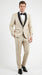 Men’s Champagne Beige Shiny Tuxedo 3 Piece Suit with Black Shawl Lapel | Formal Wedding Prom Suit Set in Sand Light Tan Color