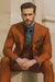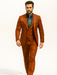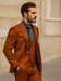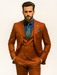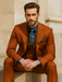 Brown or tan leather dress shoes enhance the warmth of the orange suit.