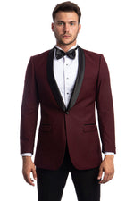 Men's One Button Shawl Lapel Dinner Jacket in Burgundy & Black