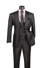 Sovana Collection - Regular Fit 3 Piece Suit 2 Button Tone on Tone Stripe in Black