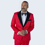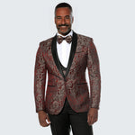 Red Paisley Pattern Tuxedo with Velvet Lapel By Stacy Adams - Wedding - Prom
