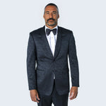 Men's Black Paisley Tuxedo Jacket with Large Peak Lapel Slim Fit - Wedding - Prom