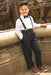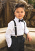 This 4-piece set includes the pants, shirt, suspenders and bow tie.