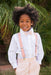 This 4-piece set includes the pants, shirt, suspenders and bow tie.