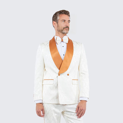Ivory and Rust Tuxedo with Textured Paisley Design Two Piece Set - Wedding - Prom