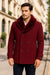 Mens Burgundy Double-Breasted Overcoat with Faux Fur Shawl Collar – Slim Fit Peacoat - Alberto Nardoni Signature