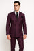 Men's Burgundy Plaid Double-Breasted Suit – Classic Windowpane Formal Two-Piece Suit By Rossiman