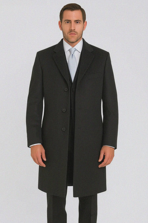 Three Quarters Length Men's Dress Coat 3/4 Length Men's Car Coat In Feel Charcoal Men's Overcoat