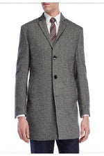 Mens Plaid Overcoat - Plaid Topcoats - Gray Carcoat