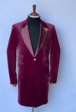 Velvet Long Coat - Velvet Carcoat - Burgundy Coat