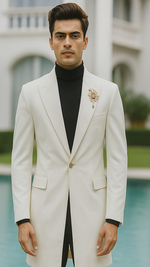USA Men's Outlet$179.00Original price $179.00 - Original price $179.00Original price$179.00 - $179.00Current price $179.00| /Low stock1 Button Single Breasted Peak Lapel Ticket Pocket Center Vent One Chest Pocket Two Flat Front Pants Color: Off White - Ivory - Cream