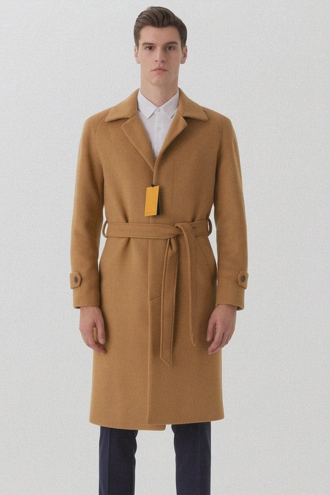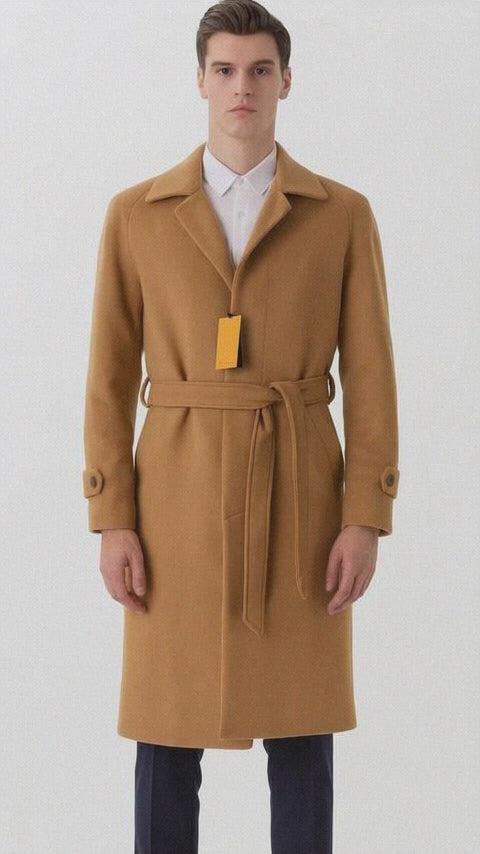 Embrace the cold season in timeless elegance with this Men’s Full-Length Cashmere Overcoat, a premium winter essential tailored for warmth, sophistication, and durability. Crafted from a luxurious cashmere blend, this winter topcoat in vicuna light brown (also described as dark camel) brings a refined look to any gentleman’s cold-weather wardrobe.