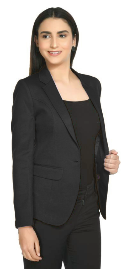 Black Three Button Solid Pattern Women Blazer - Womens Black Tuxedo