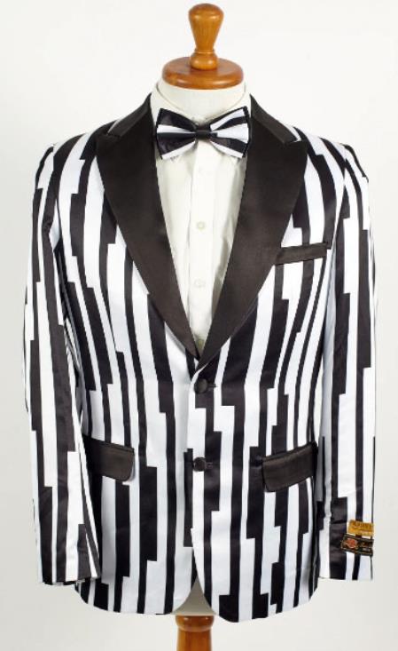 mensusa$129.00Original price $129.00 - Original price $129.00Original price$129.00 - $129.00Current price $129.00| /Two Button Single Breasted Peak Lapel Two Flap Front Pocket One Chest Pocket Color: Black and White SKU#JA6510