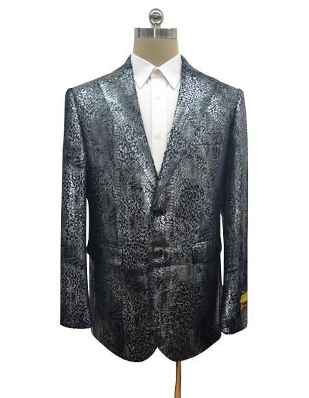 mensusa$169.00Original price $169.00 - Original price $169.00Original price$169.00 - $169.00Current price $169.00| /One Button Closure Single Breasted Shawl Lapel Two Besom Pockets One Chest Pocket Floral Pattern Color: Black & Silver