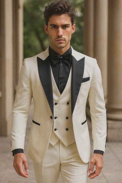 Ivory Wedding Suit - Peak Label Cream Tuxedo Suit - Ivory Dinner Jacket Plus Pants