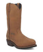 12″ Shaft; Leather Boot; Leather Pull Tabs For Easy On; Breathable Waterproof Membrane; Antibacterial And Antifungal Textile Lining; Removable Closed-Cell Orthotic Insole; Heat, Oil, And Slip Resistant Mini Lug Rubber Outsole; Electrical Hazard Protection; 1 1/4″ Cowboy Heel; Round Toe; Color: Midbrown; Style #DP69681