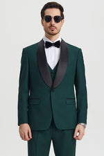 Elegant Hunter Green Tuxedo for Prom and Wedding: Stacy Adams' Refined One-Button Shawl Lapel Masterpiece
