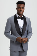 Men's Stacy Adams Vested One Button Shawl Lapel Designer Tuxedo in Grey