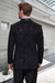 Make a bold statement at your next formal event with this men's black paisley tuxedo. Featuring a velvet smoking jacket with satin shawl lapel, a matching double-breasted vest, and solid black trousers, this designer prom and wedding suit delivers elegance and modern flair. Perfect for grooms, prom kings, and red-carpet-ready gentlemen.