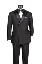 Modern Fit Black 2 Piece Double Breasted Tuxedo Adjustable Waistband with Oversized Bow Tie