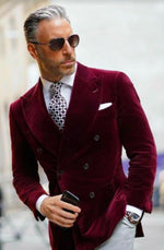 Mens Velvet Double Breasted Blazer - Slim Fitted