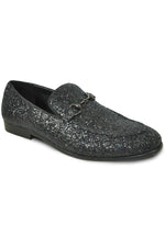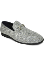 "Silver Grey Glitter Sequin Tuxedo Loafers: Elevate Your Prom Look with the Latest Menswear from Bravo"