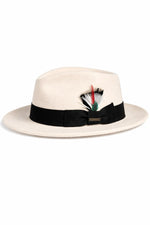 Gangster 100% Austrailian Wool Crushable Mens Fedora Hat - Removable Feather Gangster White Mens Fedora Hat