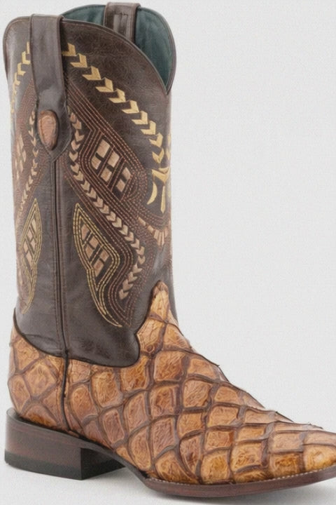 Ferrini Bronco Men's Print Pirarucu Fish Boots Handcrafted Cognac 4339 — USA Men's Outlet Skip to content