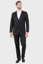 Big and Tall Tuxedo - Black 3 Piece Vested Flat Front Pants Shawl Lapel Tuxedos