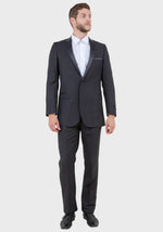 Big and Tall Tuxedo - Charcoal 1 Button Flat Front Pants Satin Peak Lapel Tuxedo