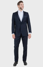 Big and Tall Tuxedo - Flat Front Pants Navy 1 Button Peak Lapel Tuxedo