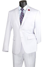 Nola Collection - White Regular Fit 2 Piece Suit Flat Front Pants with 2″ Elastic Waistband