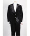 Men's 2 Button Black Velvet Jacket, with floral pattern, Satin Peak Lapel, and Black Dress Pants velo