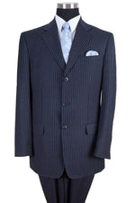 Mens Classic Fit 3 Button Banker Pinstripe Suit in Navy