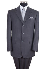 Mens Classic Fit 3 Button Banker Pinstripe Suit in Grey