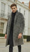 Men’s Luxury Long Grey Faux Fur Coat – Winter Overcoat with Animal Print Design