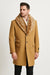 Command attention and stay warm in this camel wool dress coat with faux fur trim, the perfect layering piece for men who value elegance and comfort.