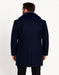 Mens Navy Wool Overcoat with Royal Blue Faux Fur Shawl Collar Cashmere Carcoat