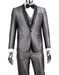- Gray Prom Suit - Mens 1 Button Shawl Lapel Vested Wedding | Prom Tuxedo in Silver Grey Sharkskin