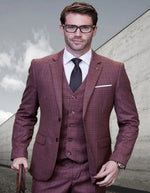 Men's Designer Two Button Vested Wool Windowpane Suit in Mauve Pink