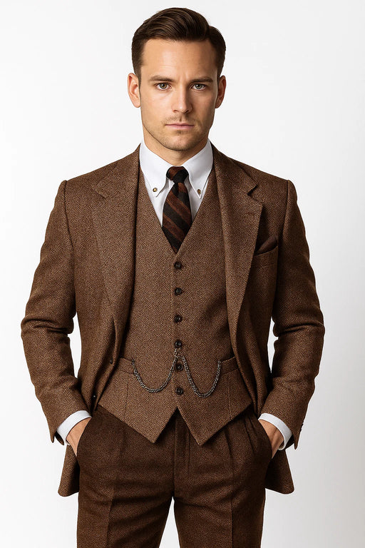 menstuxedousa$189.00Original price $189.00 - Original price $189.00Original price$189.00 - $189.00Current price $189.00| /Step into the timeless charm of the Roaring Twenties with this Light Brown Herringbone 3-Piece Tweed Suit, inspired by the elegance and sophisticat...