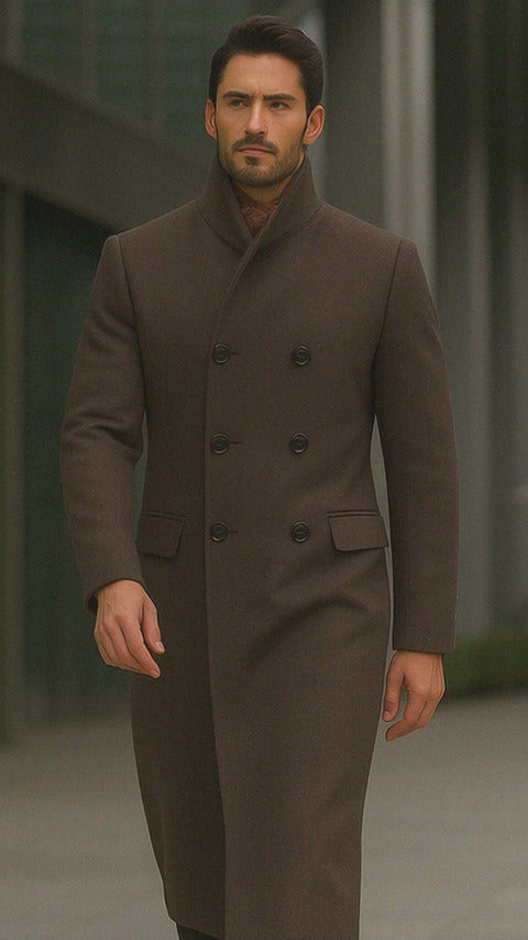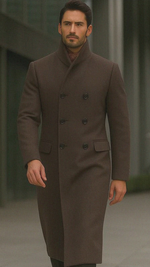 Step into cold weather with unmatched style and warmth in the Men’s Full-Length Double Breasted Brown Herringbone Top Coat—a true classic redefined for today’s discerning gentleman. Expertly tailored for a commanding fit, this top coat blends traditional charm with contemporary design, offering an essential piece for fall and winter wardrobes.