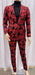 Mens Red and Black Floral Brocade Tuxedo Suit – Two Piece Slim Fit Set