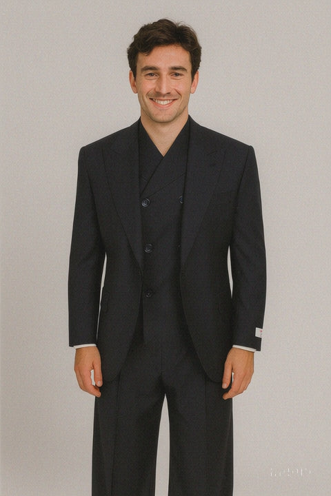 Tiglio Rosso Suit - Classic Fit Athletic Cut 100% Wool Super 150s Italian Fabric Peak Lapel in Color Navy