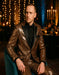 Pair with a black dress shirt and patent leather shoes for a sleek, elevated look that enhances the metallic tones of the sequin finish.